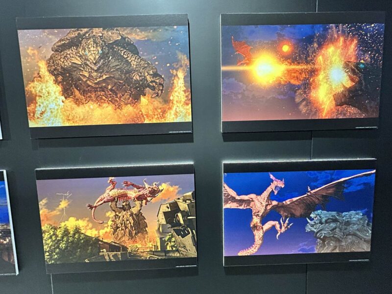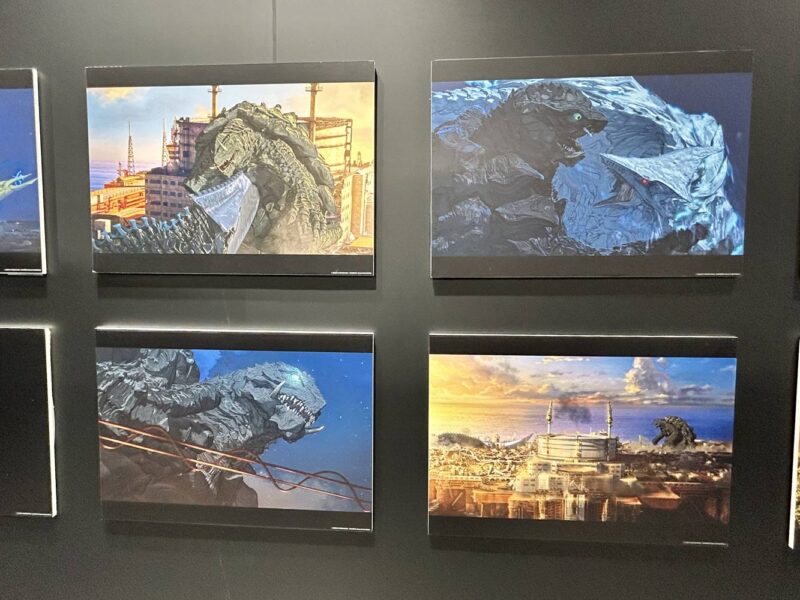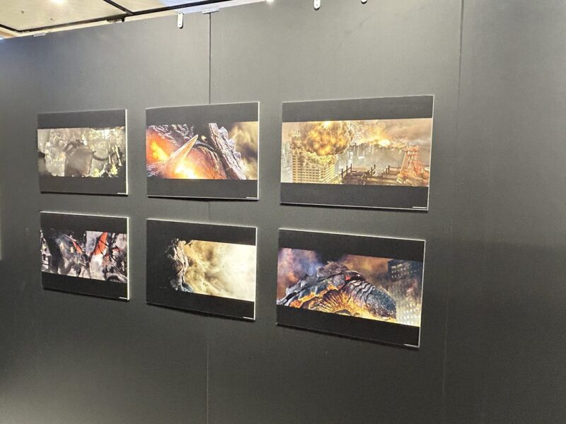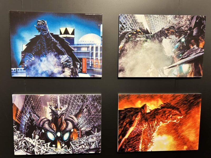 ガラスケース越しの展示物まとめ。当日の服や手荷物(ゴジラ-1.0のミニバッグ)等が映ったりしていますが、切り抜き加工したりして何とか工夫して誤魔化しています。